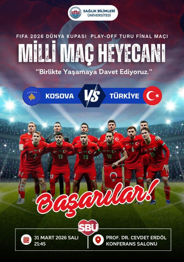 A Milli Takımımızın bugün Kosova ile oynayacağı Dünya Kupası Play-off Turu Final Maçı 21:45'te Prof. Dr. Cevdet ERDÖL Konferansde Salonunda yayınlanacaktır.