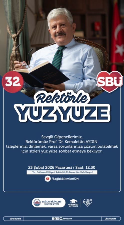 Üniversitemiz Gülhane Külliyesi Kır Kafe karşısında yer alan Rektörlük Ek Binasında 23 Şubat 2026 saat 12:30'da Rektör Hocamız, siz değerli öğrencilerimizin taleplerinin dinlenemek, varsa sorunlarıza çözüm bulabilmek üzere sizleri yüz yüze sohbet etmeye bekliyor.