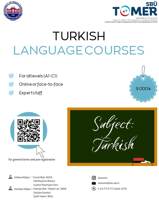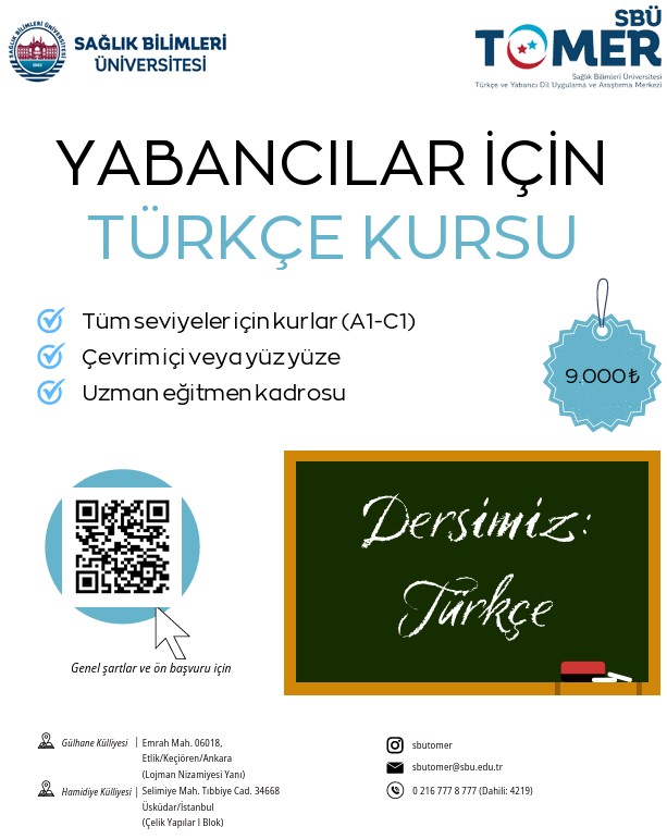 Sağlık Bilimleri Üniversitesi Türkçe ve Yabancı Dil Uygulama ve Araştırma Merkezi (TÖMER) tarafından düzenlenen dil kurslarına başvurular başlamıştır. Başvuru şartları ve kurslara ilişkin detaylı bilgiler aşağıda yer almaktadır.